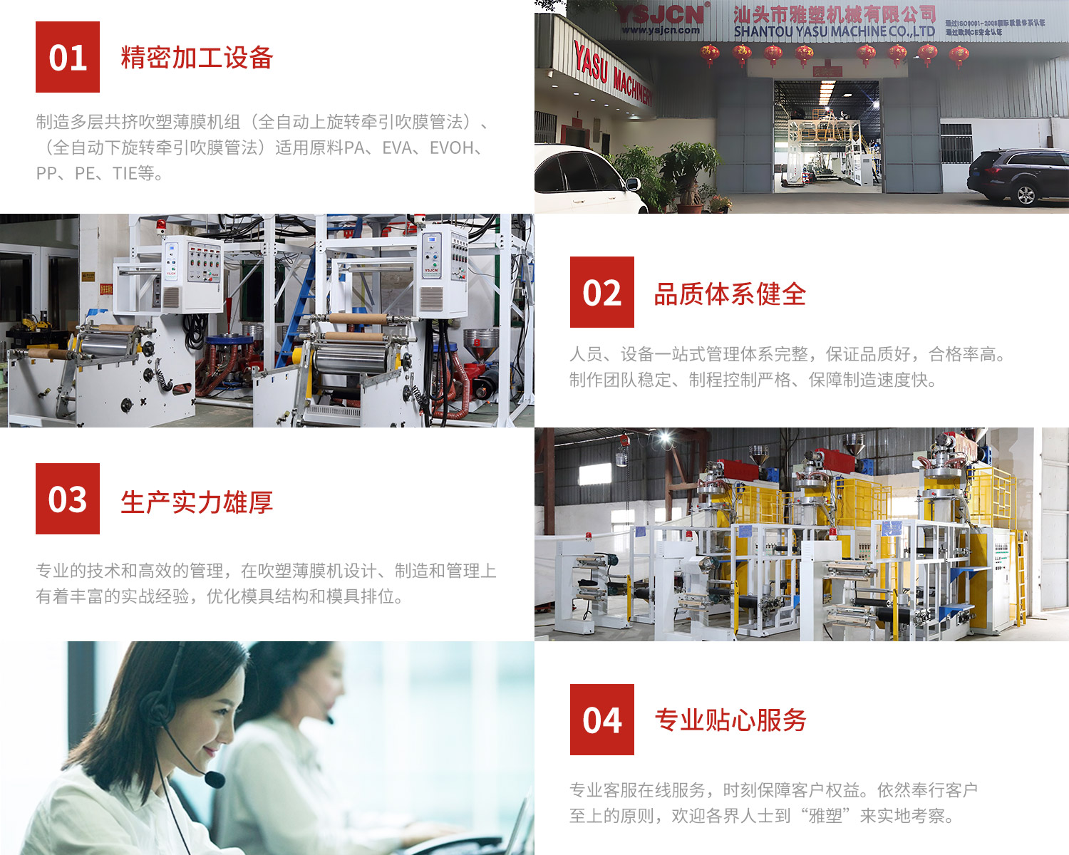 廣東省汕頭市雅塑機(jī)械有限公司網(wǎng)站正式上線! 雅塑公司坐落于中國廣東省汕頭海濱城市,自古通商良港,“百載商埠,著名僑鄉(xiāng)”,以成為多層共擠薄膜重點(diǎn)制造基地。